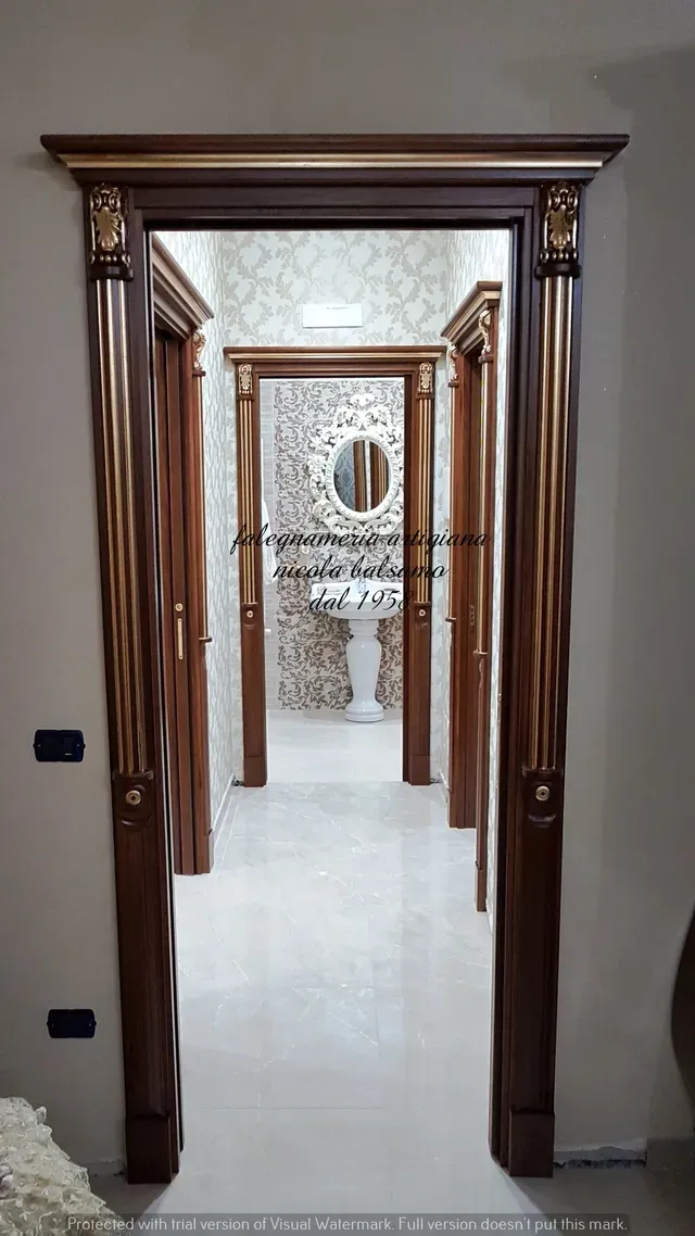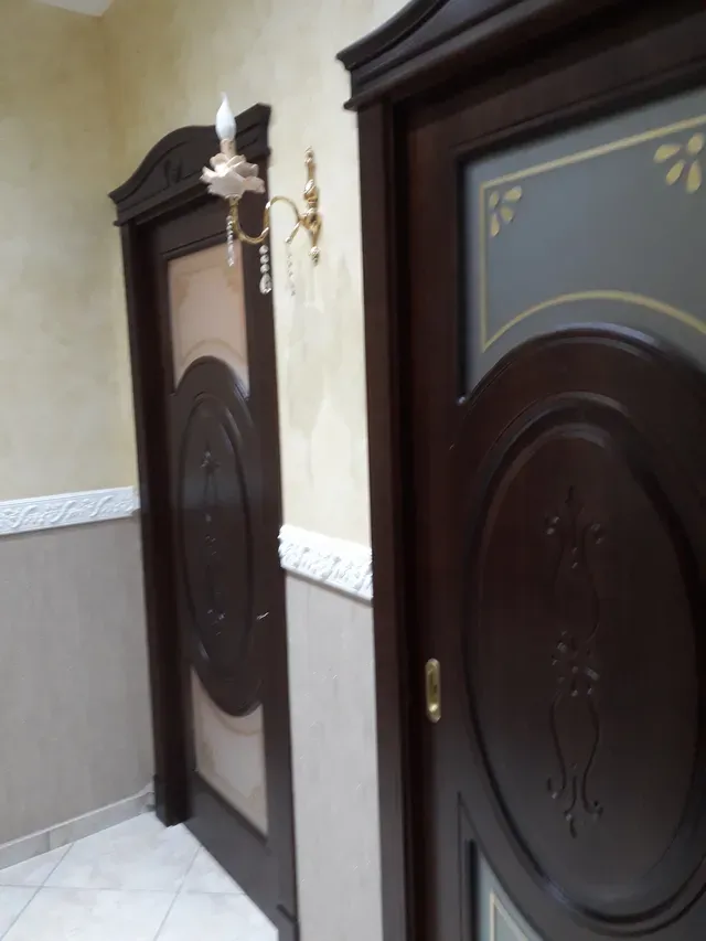 Tutte le porte e gli infissi sono realizzati con legni pregiati anche su disegno fornito dal cliente.